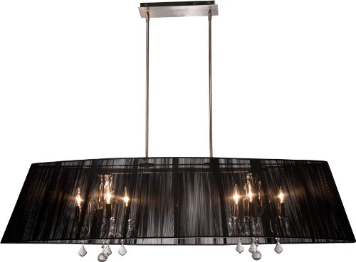 FeaturesBeautiful 8-Lite Island Light, Polished Nickel and Silk String Shades from the ARTCRAFT Claremont CollectionBody Dimensions: 55" Width/OD, 43" Height, 17" DepthUL / CSA certifiedRated for InteriorRequires 8 x 60W E12 Candelabra Base bulbs (not included) Artcraft Lighting AC384BK Claremont 8-Lite Island Light, Polished Nickel with Black Silk String Shades?