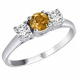 Platinum Round 3 Stone Citrine & Diamond Ring (1 ctw) Size 10 1/2This Platinum diamond ring is prong set with 1 round Citrine and 2 round white diamonds. The total carat weight of all the stones are 1 carat. The diamonds are H-I color and SI-I2 clarity. This ring is available in sterling silver, 10k white gold, 14k ....