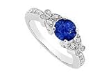 Sapphire and Diamond Engagement Ring : 14K White Gold - 0.66 CT TGW Size 11.5
