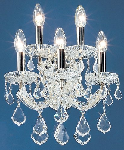 FeaturesSwarovski SpectraBulbs not includedUses five 60W candelabra bulbsPictured in ChromeCrystal shown: Crystalique Classic Lighting 8105 CH SC Swarovski Spectra Crystal Maria Thersea 14" Crystal Traditional Wallchiere from the Maria Thersea Collection 8105-CH?