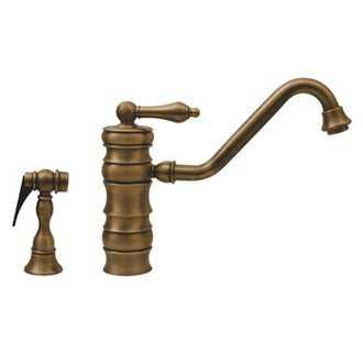 FeaturesSingle Metal Lever HandleMatching Side Spray Included9 1/2-Inch Spout Reach6 3/8-Inch Aerator ClearanceBrushed Nickel Whitehaus WHKTSL3-2200-BN Vintage III 9-1/2-Inch Single Lever Kitchen Faucet with Traditional Swivel Spout and Matching Side Spray, Brushed Nickel?