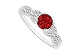 Ruby and Diamond Engagement Ring : 14K White Gold - 0.75 CT TGW Size 7.5