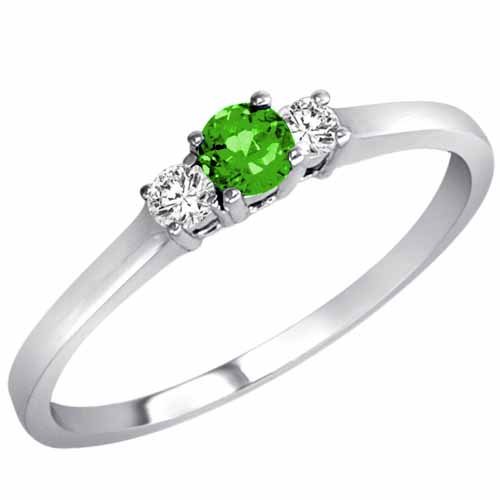 Platinum Round 3 Stone Peridot & Diamond Ring (1/4 ctw) Size 7